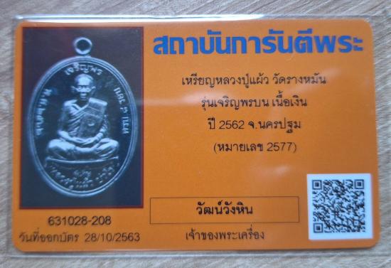 เหรียญเจริญพรบน หลวงปู่แผ้ว ปวโร ปี 62 เนื้อเงิน # 2577 พร้อมกล่อง+บัตรGครับ