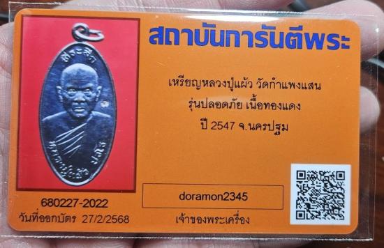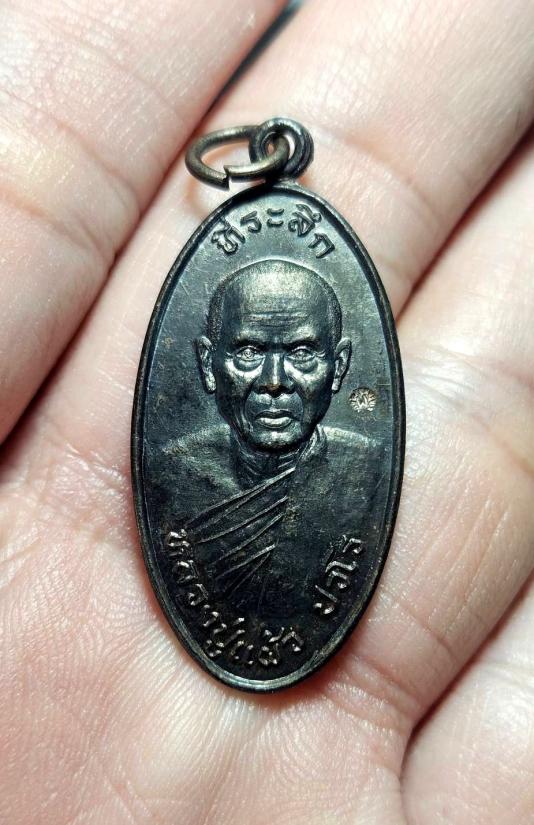 ใบขี้เหล็ก รุ่นแรก หลวงปู่แผ้ว เนื้อทองแดง ปี 2547 ผิวสวยดำๆเดิมๆ พร้อมบัตรรับรอง
