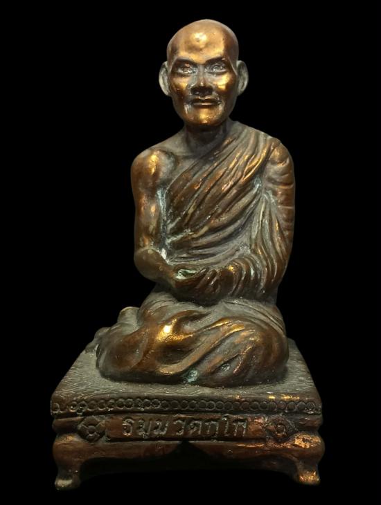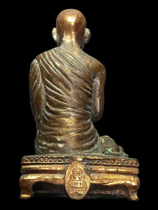พระรูปเหมือน ท่านเจ้าคุณนรฯ วัดเทพศิรินทร์ฯ นั่งพับเพียบ อุดผงใต้ฐาน ซิลิก้าบุแผ่นทองแดง ปี ๒๕๒๐ ขนาด 3 นิ้ว