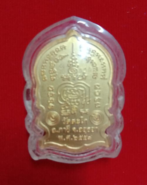 เหรียญนั่งพานชนะมาร หลวงพ่อรวย วัดตะโก ปี2558 เนื้อกะไหล่ทองลงยา ไม่มีกล่อง