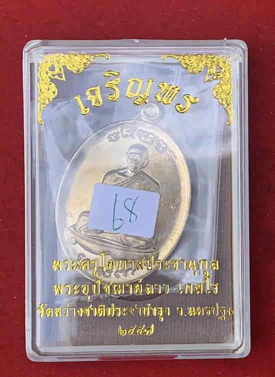 เหรียญเจริญพร หลังนางกวัก หลวงพ่อฉาว วัดสว่างชาติประชาบำรุง จ.นครปฐม เนื้ออัลปาก้า หมายเลข 68