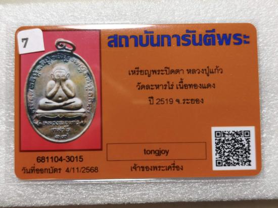 ชื่อพระเครื่อง เหรียญปิดตาหลวงปู่แก้ว สวย แดง เดิมๆ พร้อมบัตร