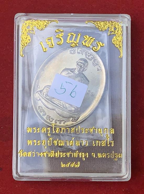 เหรียญเจริญพร หลังนางกวัก หลวงพ่อฉาว วัดสว่างชาติประชาบำรุง จ.นครปฐม เนื้ออัลปาก้า หมายเลข 56