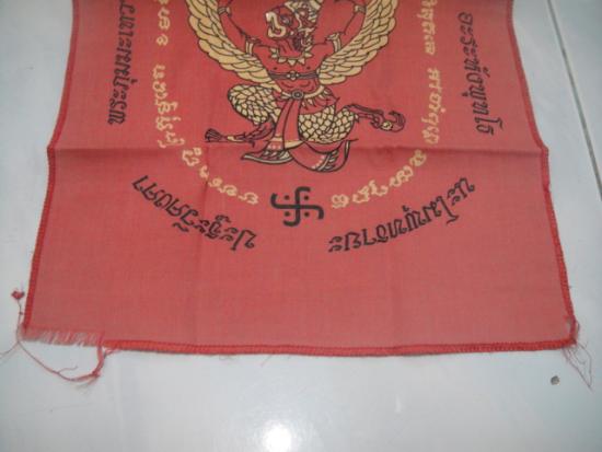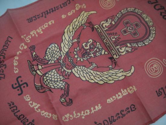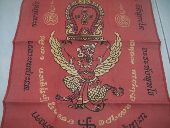 วัดใจเคาะเดียว........100.......ผ้ายันต์ครุฑแบกเสมา วัดหลวงพ่อโอภาสี อาศรมบางมด ขนาดประมาณ 11 x 18 นิ้ว สวย -- 1