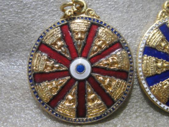วัดใจเคาะเดียว......100.......เหรียญพระพุทธชินราช พิมพ์งบน้ำอ้อย วัดพระศรีรัตนมหาธาตุ พิษณุโลก หลังอกเลา พานพระศรี กะไหล่ทองลงยาแดง + น้ำเงิน สวย รวม 2 เหรียญ