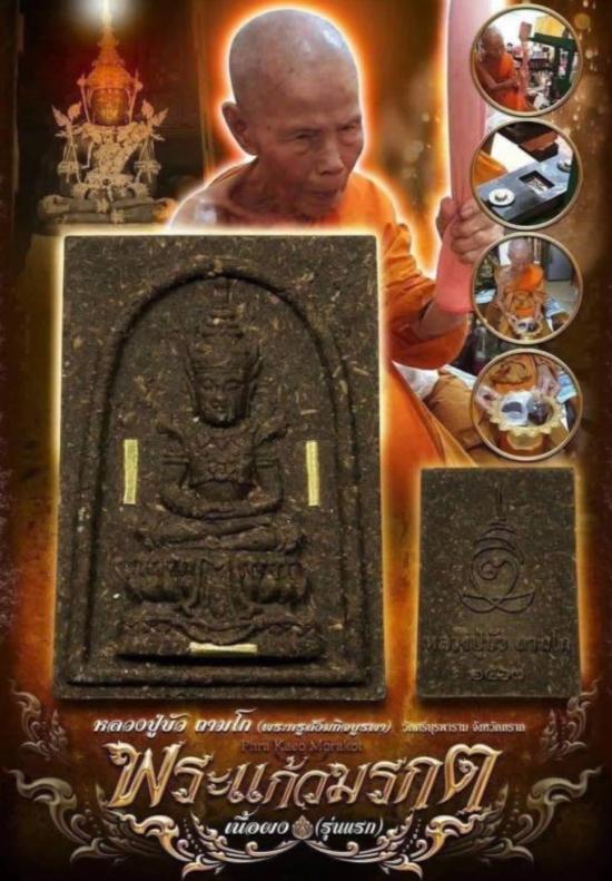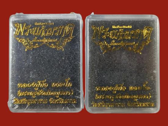 พระแก้วมรกตเนื้อผงรุ่นรุ่นแรก หลวงปู่บัว ถามโก วัดศรีบูรพาราม จังหวัดตราด สวยๆกล่องเดิมยังไม่แกะซีลจำนวน 2 องค์ วัดใจ 130 แดงครับ