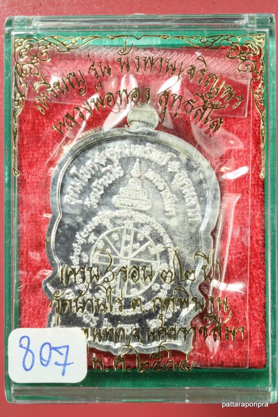เหรียญนั่งพาน หลวงพ่อทอง รุ่นเจริญพร ปี2564 เนื้อกะไหล่เงินลงยาสีธงชาติ หมายเลข 807