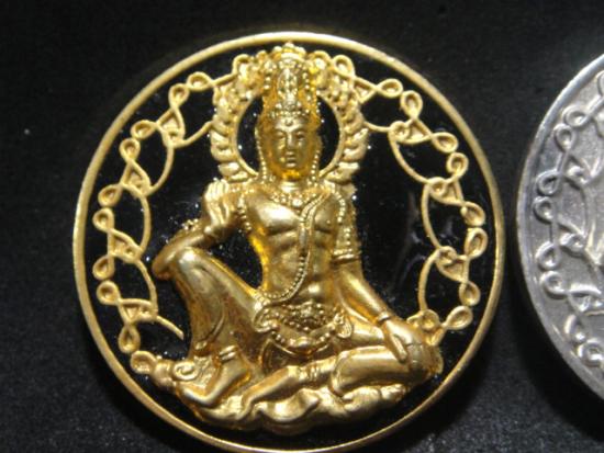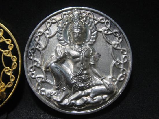 วัดใจเคาะเดียว.......100......เหรียญกะไหล่ทองลงยาดำ + กะไหล่เงิน ขนาด 3.5 ซม. รุ่นเกาะเทวดา ตอกเลข ๘ สวย รวม 2 เหรียญ