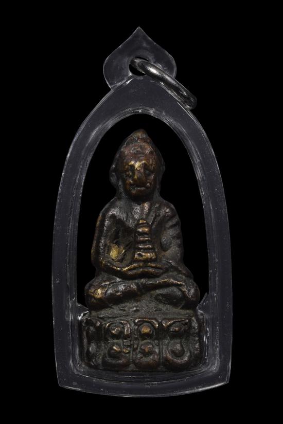 พระกริ่งแหลมทราย รุ่นแรก ปี 2491 พิมพ์ฐานสูง โค๊ดขุด ยันต์นะโภคทรัพย์ กริ่งดังฟังชัด สวยเดิม เลี่ยมกันน้ำพร้อมขึ้นคอ มาพร้อมบัตร G-PRA