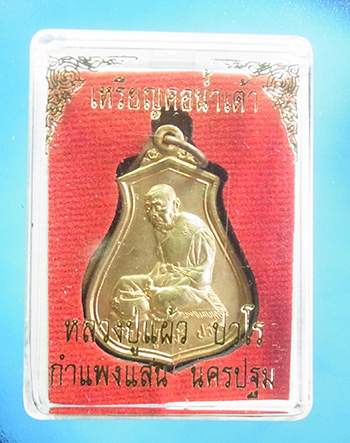 เหรียญคลอน้ำเต้า หลวงปู่แผ้ว วัดกำแพงแสน จ.นครปฐม ปี 2546 เนื้อทองแดง สภาพออกจากวัด เก็บอย่างดี พร้อมกล่องเดิมครับ