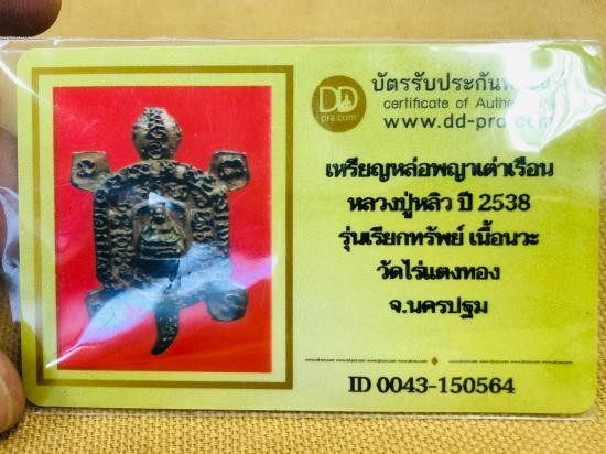 เหรียญหล่อพญาเต่าเรือน กลวงพ่อหลิว วัดไร่แตงทอง รุ่นเสริมทรัพย์ เนื้อนวะ ปี 2538 นครปฐม มาพร้อมบัตรรับรอง