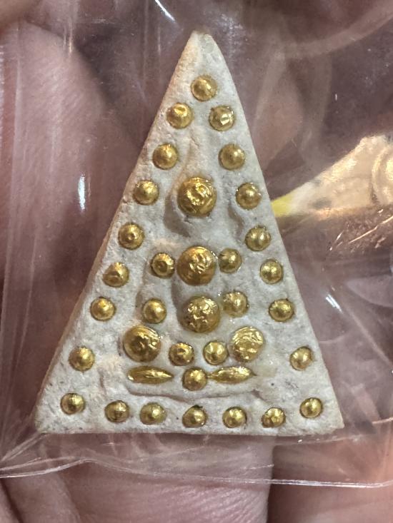 พระสมเด็จโต พิมพ์สามเหลี่ยม หน้ากากทองคำหน้าหลัง