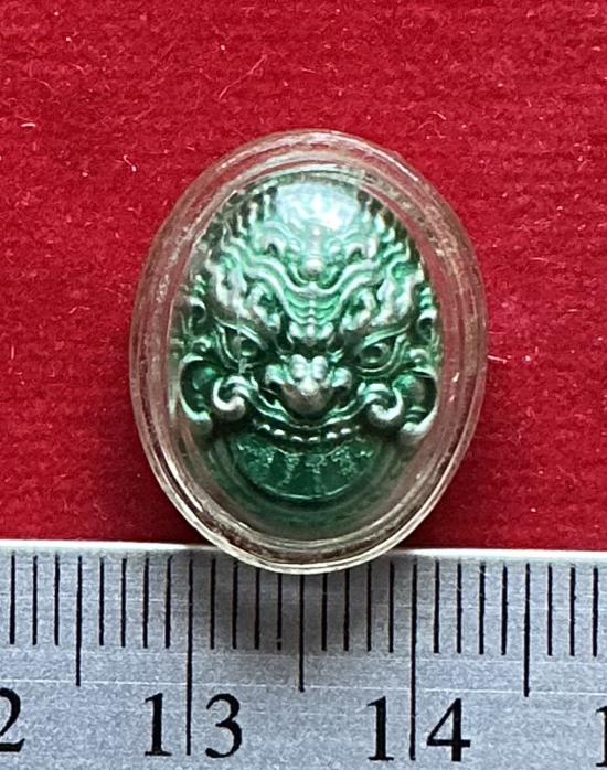 ราหูเงิน ลงยาเขียว รุ่นมหาโภคทรัพย์ ครูบากฤษฎา ปลุกเสกเลข 16 เลี่ยมเก็บผิว ไม่มีกล่อง