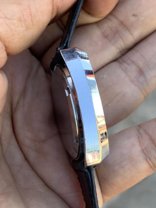 สวยตามรูป สภาพสวยตามกาลเวลา แท้วินเทจยุค1970 แบรนด์สวิส เรือนสแตนเลส สตีล ทรงรถถัง วันที่ตรงเลข6 วันที่เดินปกติ รับประกันตามกฎ