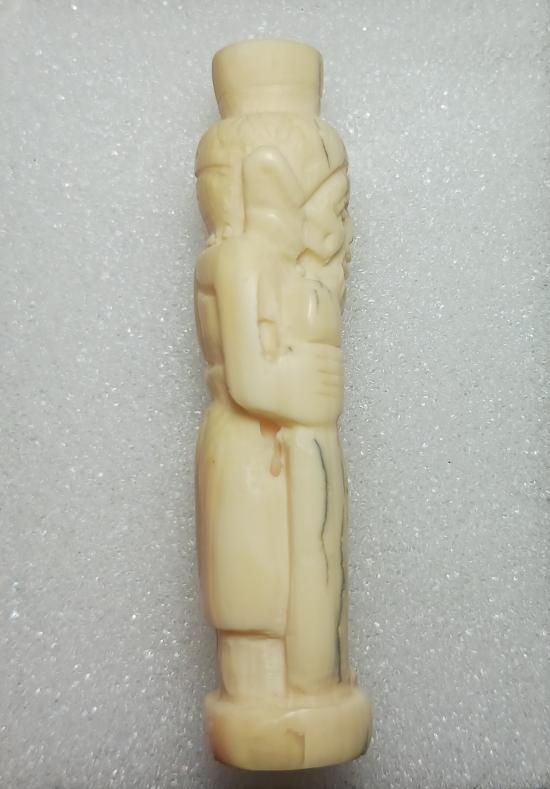 พ่อแก่ ฤาษี ยืนถือไม้เท้าสะพายย่าม งาช้าง ศิลป์ครูปราณีตสวยงาม ฝังตะกรุด ด้านหลังมีรอยจาร เคาะเดียวพอครับ