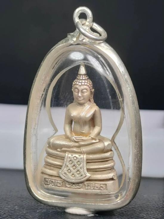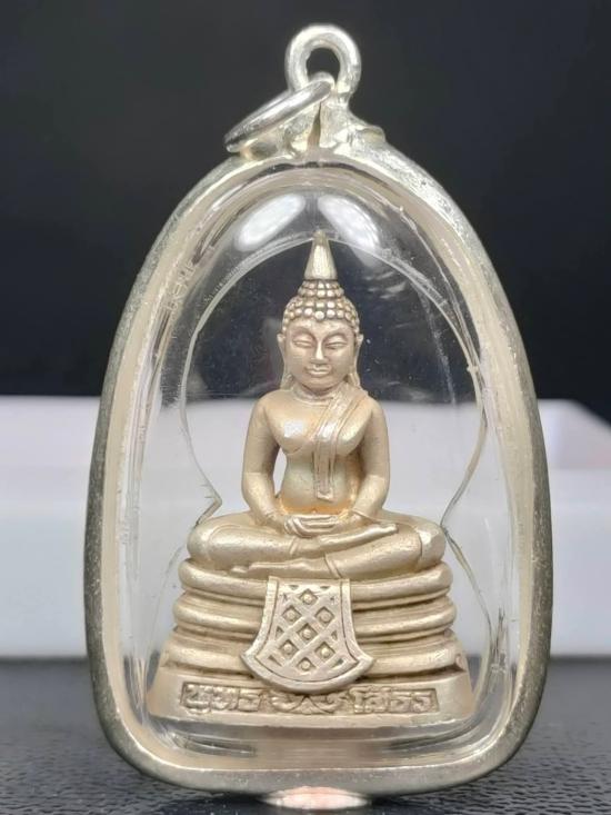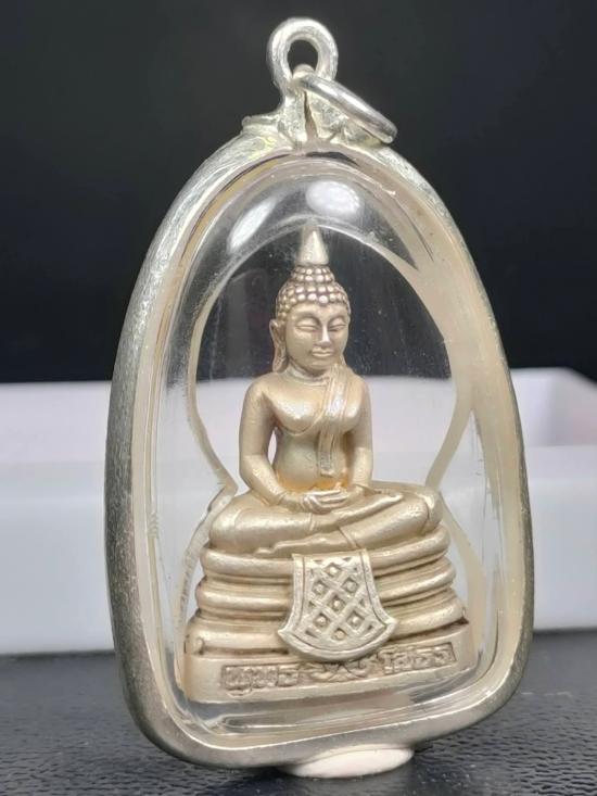 วัดใจ!! 100 บาท หลวงพ่อโสธร รุ่นสร้างอุโบสถปี 2539 เนื้อเงิน เลี่ยมกรอบเงินผ่าหวาย