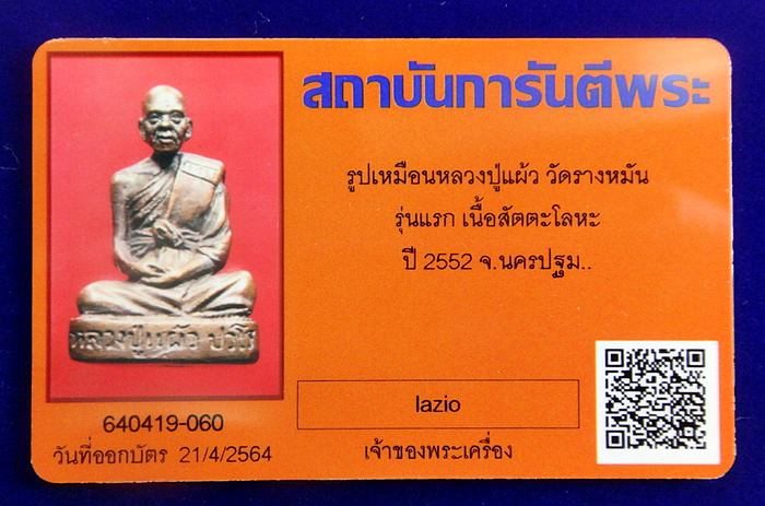 หลวงปู่แผ้ว ปวโร .. รูปหล่อรุ่นแรก วัดรางหมัน เนื้อสัตตะโลหะ ปี พ.ศ.2552 + บัตร G-PRA