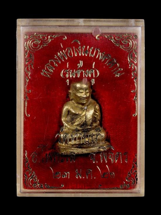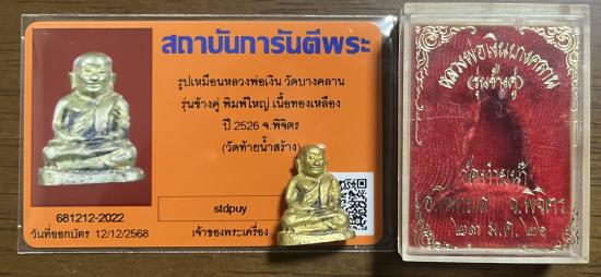 หลวงพ่อเงิน วัดบางคลาน รุ่นช้างคู่ พิมพ์ใหญ่ เนื้อทองเหลือง ปี 2526 จ.พิจิตร (วัดท้ายน้ำสร้าง) พร้อมบัตรรับรองการันตรี