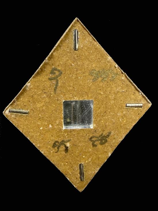 ด้านหลังองค์พระประดับด้วยแผ่นกระจก เป็นคันฉ่องโบราณใช้สะท้อนสิ่งไม่ดี ปราบสิ่งเลวร้าย ข่มคู่แข่ง แผ่นกระจกนี้ผ่านการเสกจากยอดเกจิอาจารย์มามากต่อมาก กันดวงตก แก้ดวงไม่ดี แก้ดวงชงก็ได้