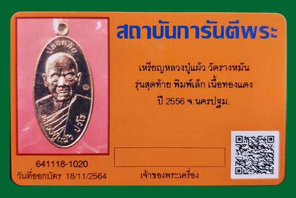 หรียญหลวงปู่แผ้ว"เหรียญปลอดภัยไร้ห่วง"ใบขี้เหล็ก "รุ่นสุดท้าย" ยันต์สวน วัดรางหมัน นครปฐม เนื้อทองแดง พิมพ์เล็ก สภาพสวย จมูกโด่ง พร้อมกล่อง อยู่ในซีลเดิมๆไม่เคยแกะ พร้อมบัตรรับรอง
