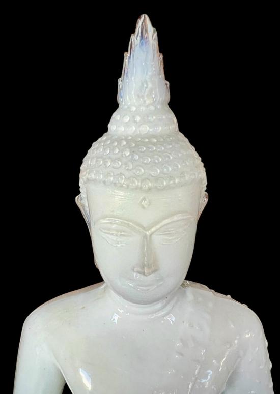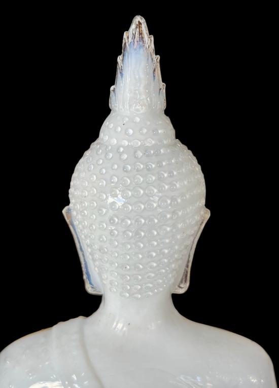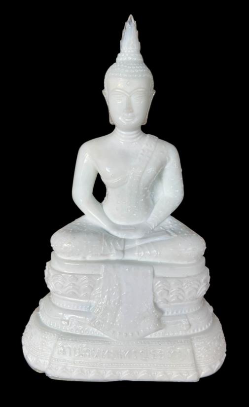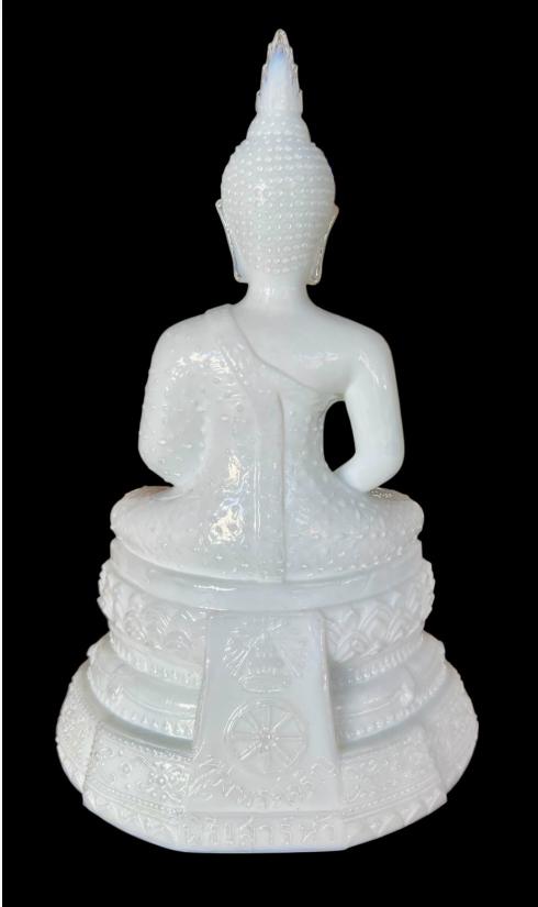 พระแก้วพิธี 25 พุทธศตวรรษ บล็อคทรงพระเจริญ พิธีเสาร์ห้า ก้นปั้มตรายาง สำนักพุทธเทวประทีป เนื้อแก้วสีขาวหยก(บล็อคนี้สีหายากครับ ไม่ค่อยพบเจอครับ) หน้าตัก 5 นิ้ว สภาพสวยสมบูรณ์ครับ