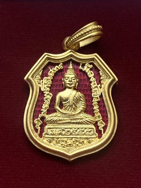 เคาะเดียวแดง เหรียญอาร์มหลวงพ่อโสธร รุ่นมหามงคลย้อนยุค เลข444 เนื้อ ชุบทองลงยาแดง