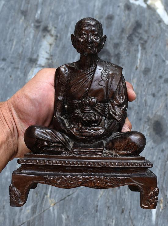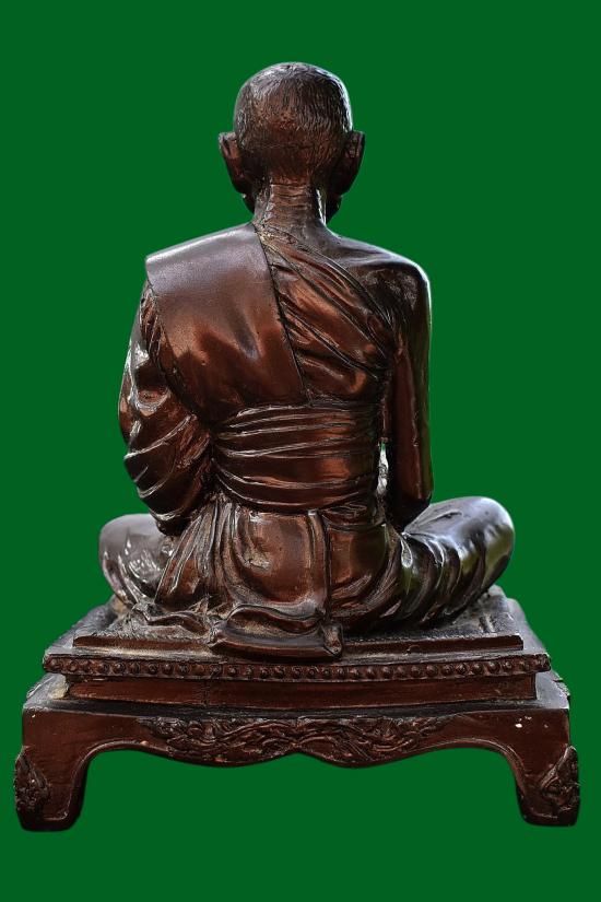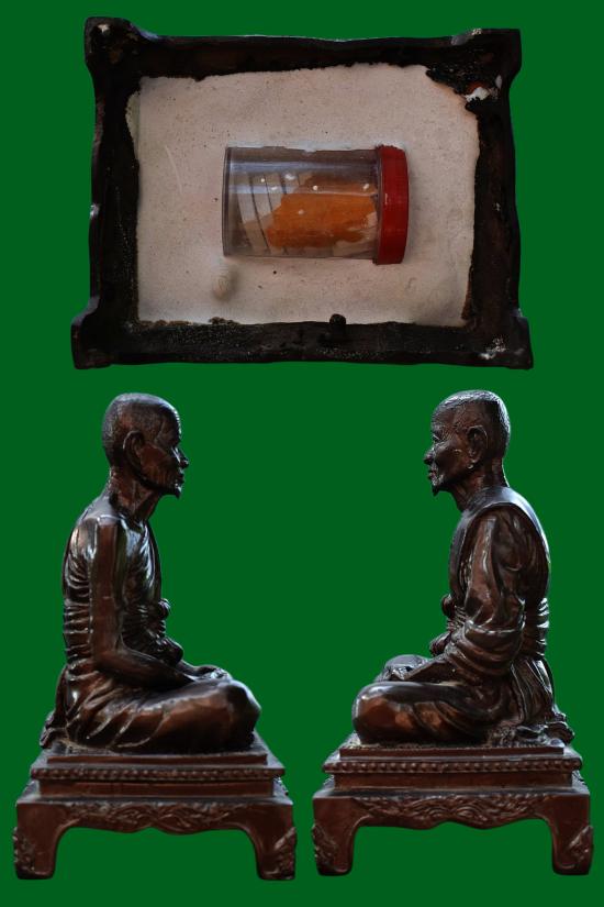 พระรูปเหมือนขนาดบูชา หลวงพ่อหยอด วัดแก้วเจริญ จ.สมุทรสงคราม เนื้อโลหะ ใต้ฐานบรรจุวัตถุมงคล พระบ้าน ผิวหิ้ง