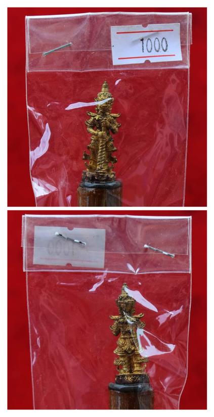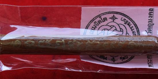 ไม้ครูสะกดวิญญาณ (ตำรับแรง) เลขต้น เบอร์ ๑๔ สร้างน้อยเพียง 90 ด้าม (หายากมากๆ) ปี 2558 หลวงปู่สิงห์ วัดบ้านป่าตะแบง จ.นครราชสีมา พร้อมซองเดิมจากวัด สภาพพระตามรูปที่ลงทุกประการ (ขนาดยาวประมาณ 17 ซม.)