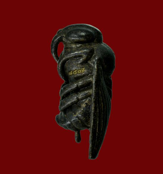 พญาแมลงภู่คำ ลักษณะ เนื้อชนวนรมดำ เพศ ตัวเมีย ขาทะลุ ผู้สร้าง/ปลุกเสก สล่าปะอ่อง จองคำ แหล่งที่มา แม่ฮ่องสอน ปีที่จัดสร้าง พ.ศ. ๒๕๖๒ (ปี 2562)