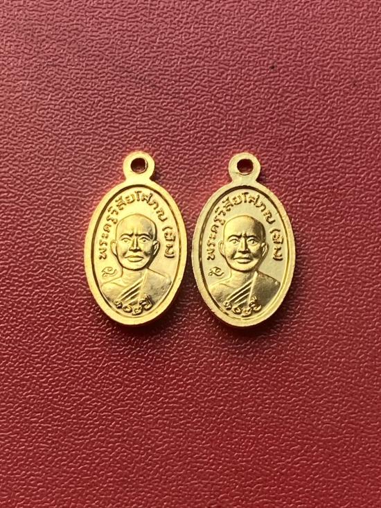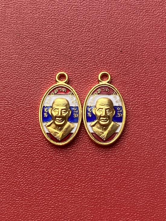 เคาะเดียวแดง เม็ดแตง 2องค์หลวงปู่ทวด รุ่น102ปีอาจารย์ทิม เนื้อชุบทองลงยาธงชาติ