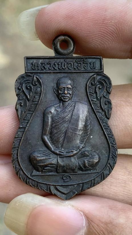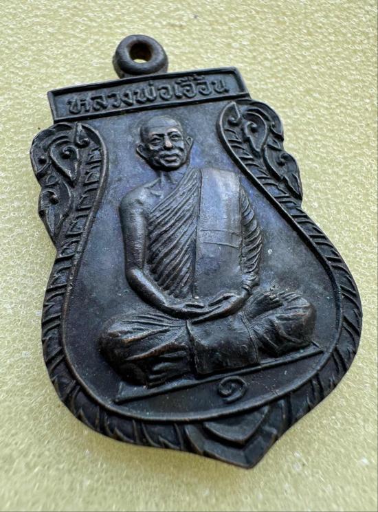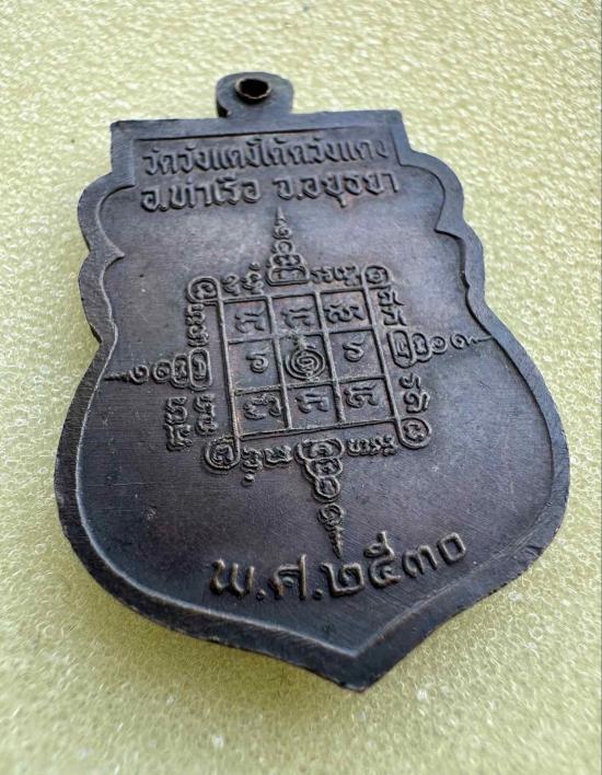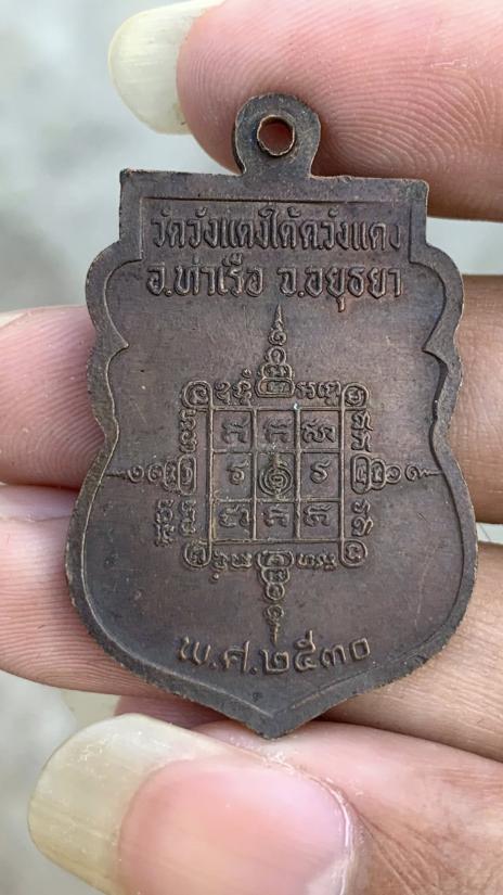 เหรียญเสมา หลวงพ่อเอื้อน วัดวังแดงใต้ รุ่นแรก พิมพ์ใหญ่ บล็อกแรก1ชิดบน เนื้อทองแดง(3) หน้าดำหลังน้ำตาล สวยคลาสสิคยันต์ไม่มีล้ม