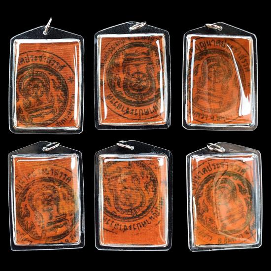 ชุด 6 องค์...รูปถ่ายซีเปียอธิษฐาน รุ่นแรก หลังจีวรหลวงปู่ปั๊มตราวัด (เลี่ยมพลาสติกเดิมจากวัด) ปี 2555 หลวงปู่เฉลิม วัดบุญนาคประชาสรรค์ จ.สมุทรสงคราม พร้อมซองใบฝอยเดิมจากวัด สภาพพระตามรูปทุกประการ (ขนาดตัวรูปประมาณ 4.3 x 3.1 ซม.)