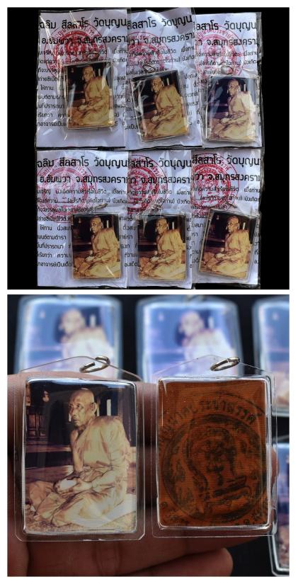ชุด 6 องค์...รูปถ่ายซีเปียอธิษฐาน รุ่นแรก หลังจีวรหลวงปู่ปั๊มตราวัด (เลี่ยมพลาสติกเดิมจากวัด) ปี 2555 หลวงปู่เฉลิม วัดบุญนาคประชาสรรค์ จ.สมุทรสงคราม พร้อมซองใบฝอยเดิมจากวัด