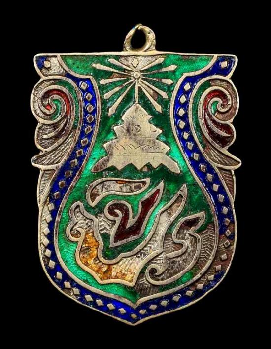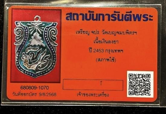 เหรียญ จปร. เนื้อเงินลงยาโบราณ ปี 2453 วัดเบญจมบพิตร (rare item)++บัตรgpra