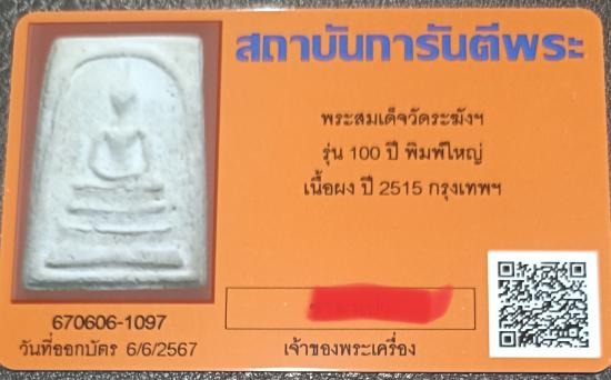 สมเด็จวัดระฆังฯ 100 ปี พิมพ์ใหญ่ เส้นด้าย ปี2515 พร้อมบัตรรับประกัน G-Pra