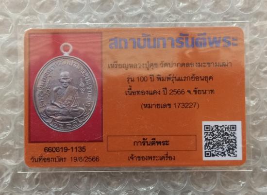เหรียญห่วงเชื่อม หลวงปู่ศุข วัดปากคลองมะขามเฒ่า จ.ชันาท รุ่น 100 ปี พิมพ์รุ่นแรกย้อนยุค เนื้อทองแดง ปี 2566