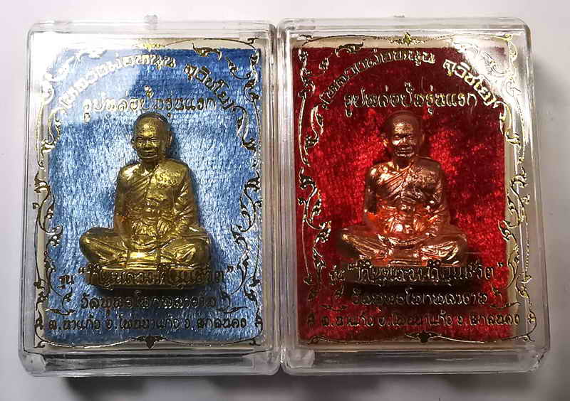( เคาะเดียว 2องค์ ) รูปหล่อปั้ม เนื้อทองฝาบาตร + ทองแดง รุ่นแรก รุ่น หนุนดวง หนุนชีวิต หลวงพ่อหนุน สุวิชโย วัดพุทธโมกพลาราม จ.สกลนคร ตอกโค๊ด ตอกหมายเลขทุกองค์ พร้อมกล่องเดิมๆเลยครับ