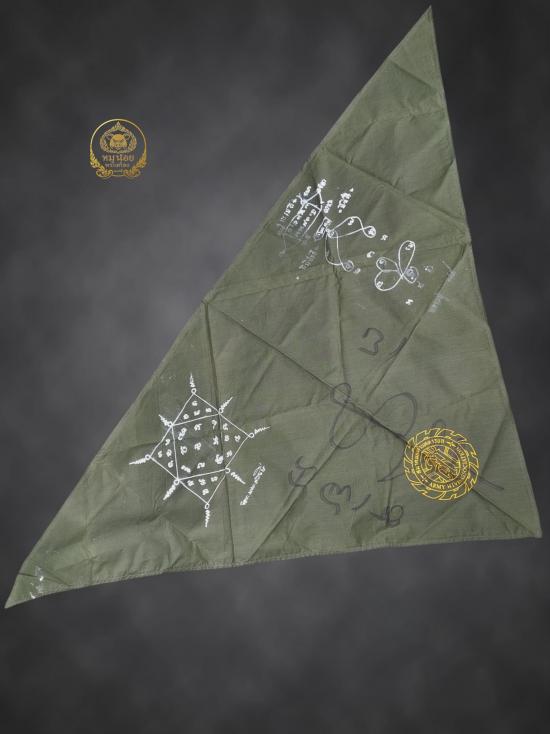 ผ้าพันคอลงยันต์ 3 เกจิ ปี 2549 หลวงปู่ทั้ง 3 จารมือให้ เพื่อแจกทหาร หลวงปู่หงษ์ สุสานทุ่งมน สุรินทร์,หลวงปู่เจียม,หลวงปู่ธรรมรังษี หายากโครตๆ