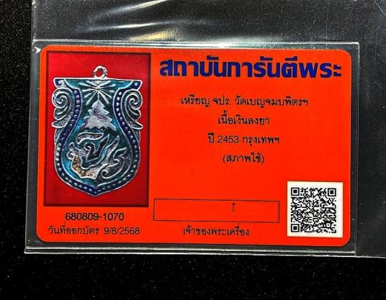 เหรียญพระราชทานล้นเกล้า ร.5 จปร.ลงยาโบราณ ปี 2453 วัดเบญจมบพิตร (rare item )++บัตรgpra