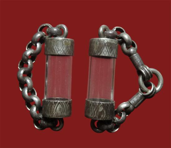 หลอดเงินพร้อมสร้อยเงินใส่ตะกรุดสาริกา สั่งทำอย่างดี 2 อัน รับประกันตามกฏ