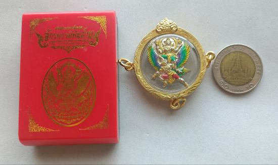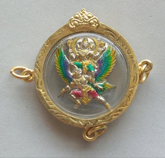 วัดใจเคาะเดียวแดงจ้า ตัดชิดนารายณ์ทรงครุฑ พระอาจารย์เลี้ยง วัดจอมเกษ เนื้ออัลปาก้าลงยาหมายเลข40 เลี่ยมกรอบชุบทอง3ห่วง เคาะเดียวแดงจ้า