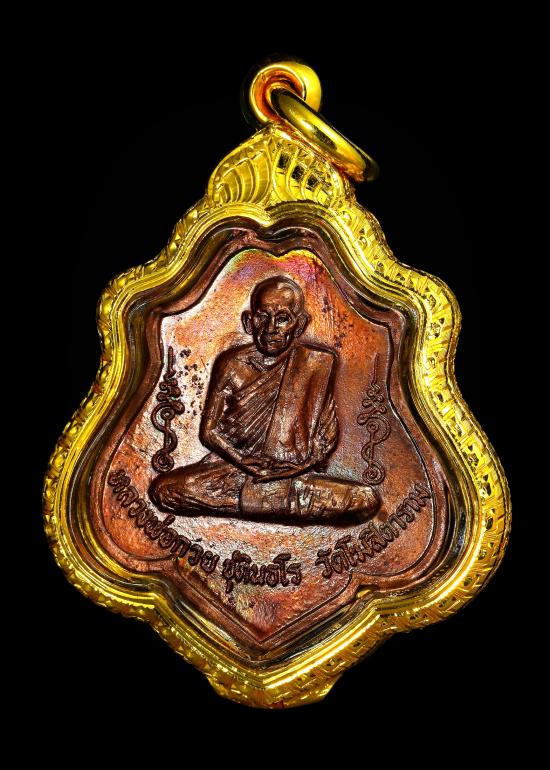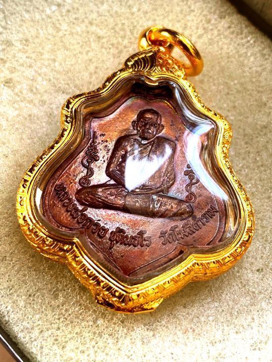 เหรียญหลวงพ่อกวย วัดโฆสิตาราม รุ่น 3 หลังยันต์ไตรสรณคม ตลับทอง 14.28 กรัม