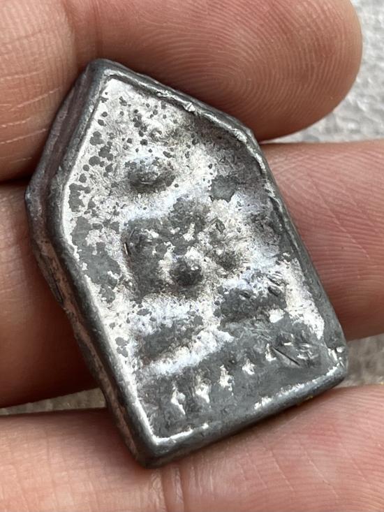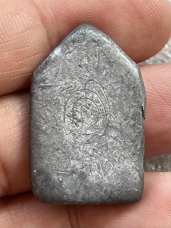 เหรียญหล่อเนื้อชินตะกั่ว หลังจารย์มือ ไม่ทราบที่