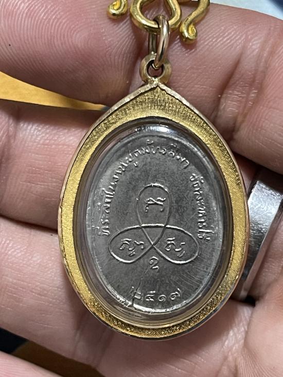 หลวงปู่ทิม อิสริโก จัดสร้างเพื่อเป็นที่ระลึกในงานผูกพัทธสีมา วัดละหารไร่ พ.ศ.2517 ( บล็อคคอยาว นิยม ) พร้อมกรอบทองคำ ตัวเหรียญมีรอนลั่นด้านล่าง
