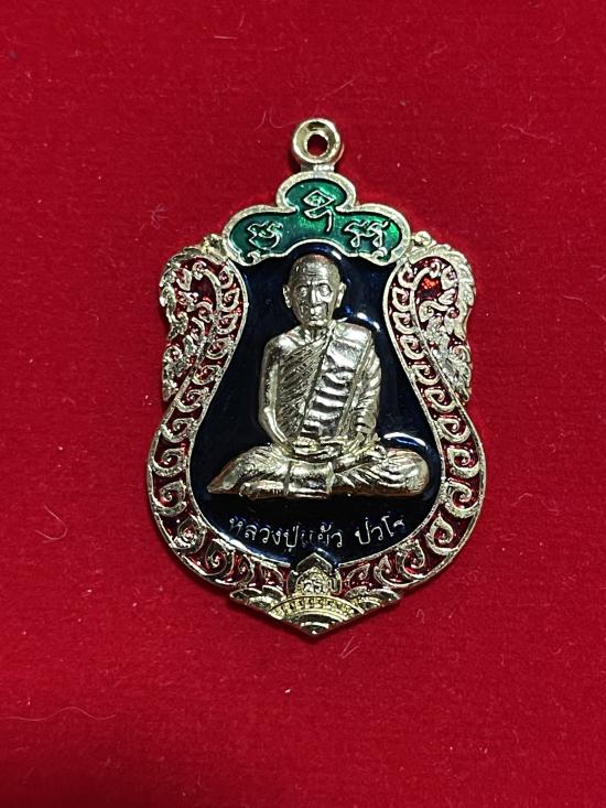 เสมาหลวงปู่แผ้ว รุ่นสุขใจ ปี 2550 เนื้อกะไหล่ทองลงยา เลข 529