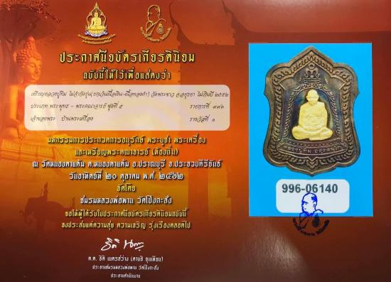 เหรียญระฆัง 9 ยอด ปี 41 หลวงปู่ทิม วัดพระขาว เนื้อนวะโลหะ หน้ากากทองคำ สร้างน้อย 359 องค์ หายาก สวยงาม พร้อมใบประกาศครับ