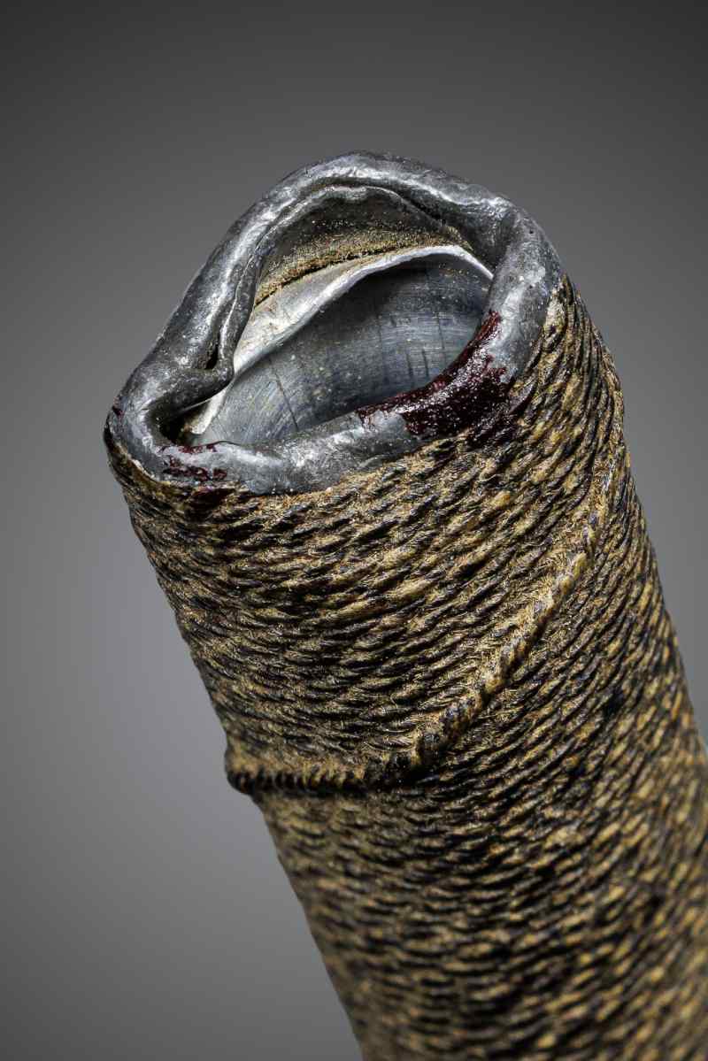 ตะกรุดเก่า ยาว3.5นิ้ว สองไส้ ถักเชือกลงรัก