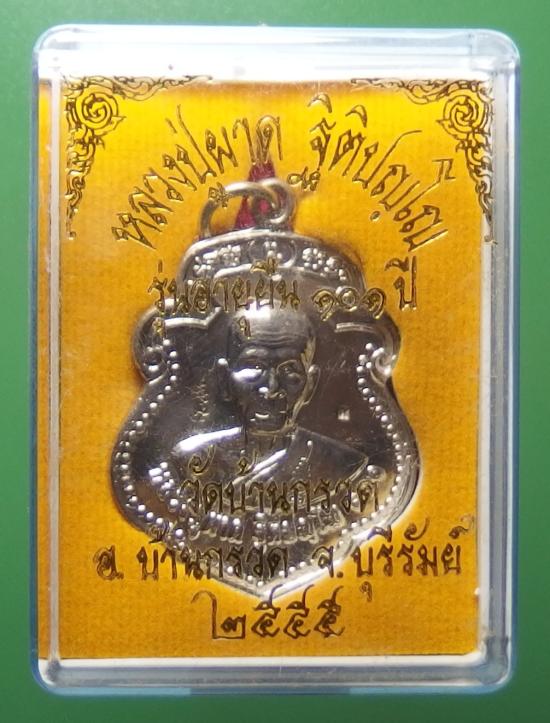 เหรียญใบตำลึง หลวงปู่ผาด วัดบ้านกรวด จ.บุรีรัมย์ รุ่นอายุยืน 101 ปี เนื้ออัลปาก้า พร้อมกล่องเดิม