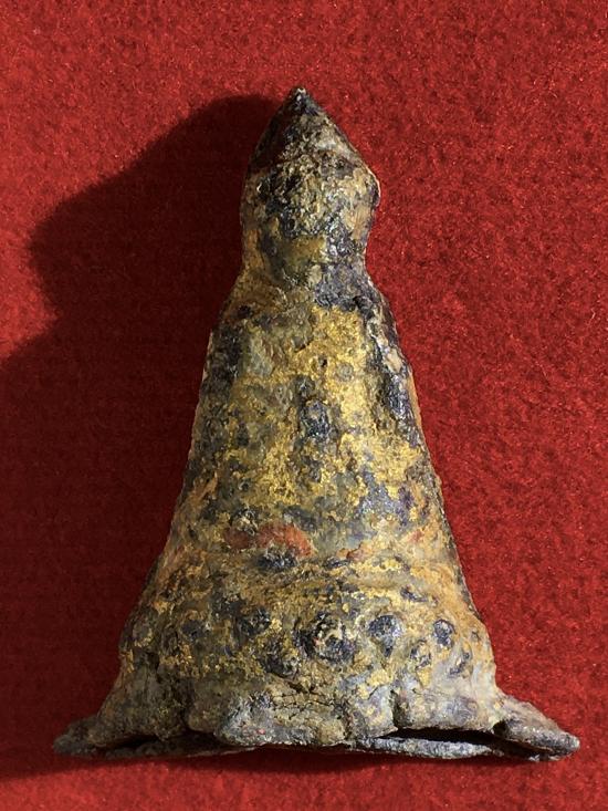 พระรัตน เนื้อชินตะกั่วสนิมแดง ลงชาดปิดทอง ใต้ฐานอุดดินไทย ยุครัตนโกสินทร์ตอนต้น (อายุการสร้างมากกว่า100ปี) องค์สวยๆ เหมาะกับการแขวนห้อย,เก็บบูชา