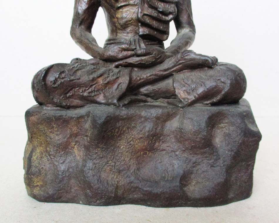 ใต้ฐานอุดปูน ฝังพระผงรูปเหมือนพ่อปู่ฤาษีสิงห์สมิงพราย 1 องค์ ตะกรุด 1 ดอก